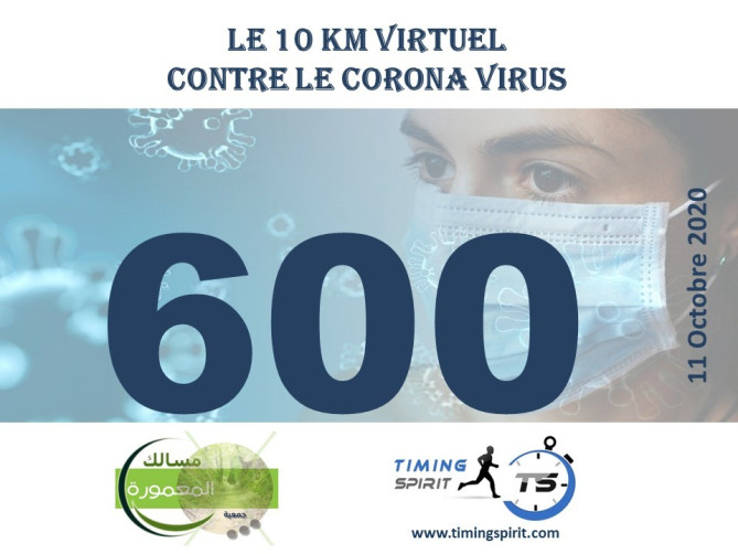 L'association Massalek Al Maamoura organise en partenariat avec Timing Spirit le 11 Octobre 2020 le 10KM Virtuel sous le slogan "Tous Unis Contre le Corona". Cette course a comme but de rester en forme en l'absence des compétitions. C'est l'occasion de nous sensibiliser tous pour vaincre ce virus tout en respectant les mesures sanitaires déployées par le ministère de la santé et en appliquant les procédures des autorités locales.