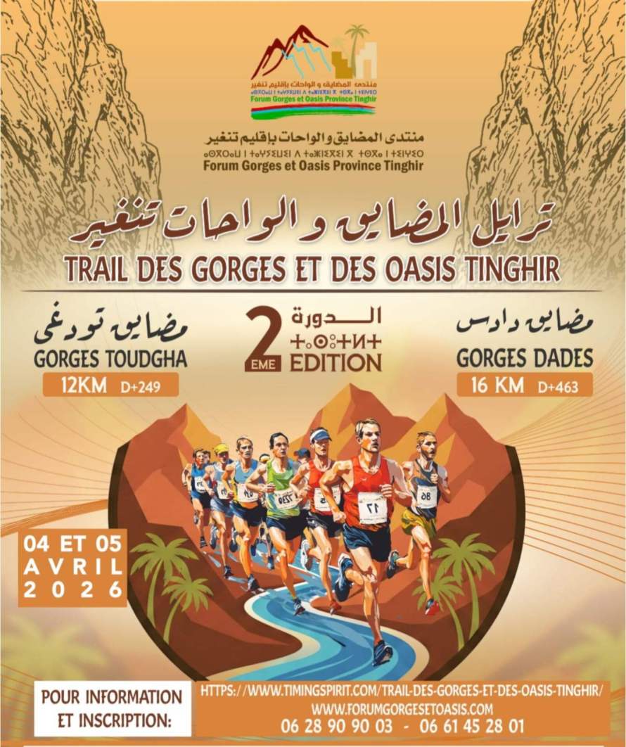 Dans le cadre de la deuième édition du Forum des Gorges et des Oasis de la Province de Tinghir, le Trail des Gorges et Oasis vous invite à vivre une expérience unique, mêlant sport, nature et découverte culturelle.